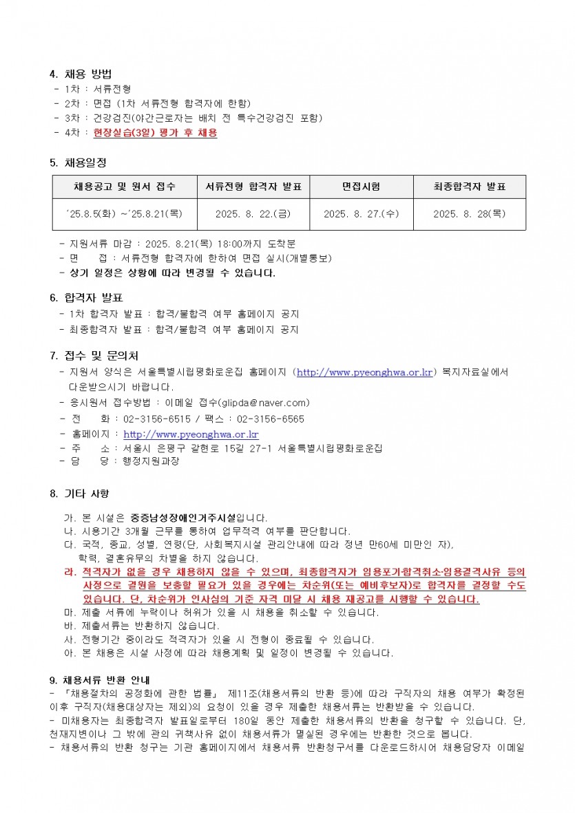 시립평화로운집 제6차 신입직원 채용공고(생활지도원) 페이지 정보 작성자 한동주 작성일 25-08-05 16:09 조회 7,680회 댓글 0건 첨부파일 파일 시립평화로운집 입사지원서이력서,자기소개서및개인정보동의서.hwp (54.0K) 106회 다운로드 DATE : 2025-08-05 16:10:16 파일 2025년 6차 생활지도원채용공고.pdf (68.3K) 100회 다운로드 DATE : 2025-08-05 16:10:16 본문 이전글 다음글 목록 답변