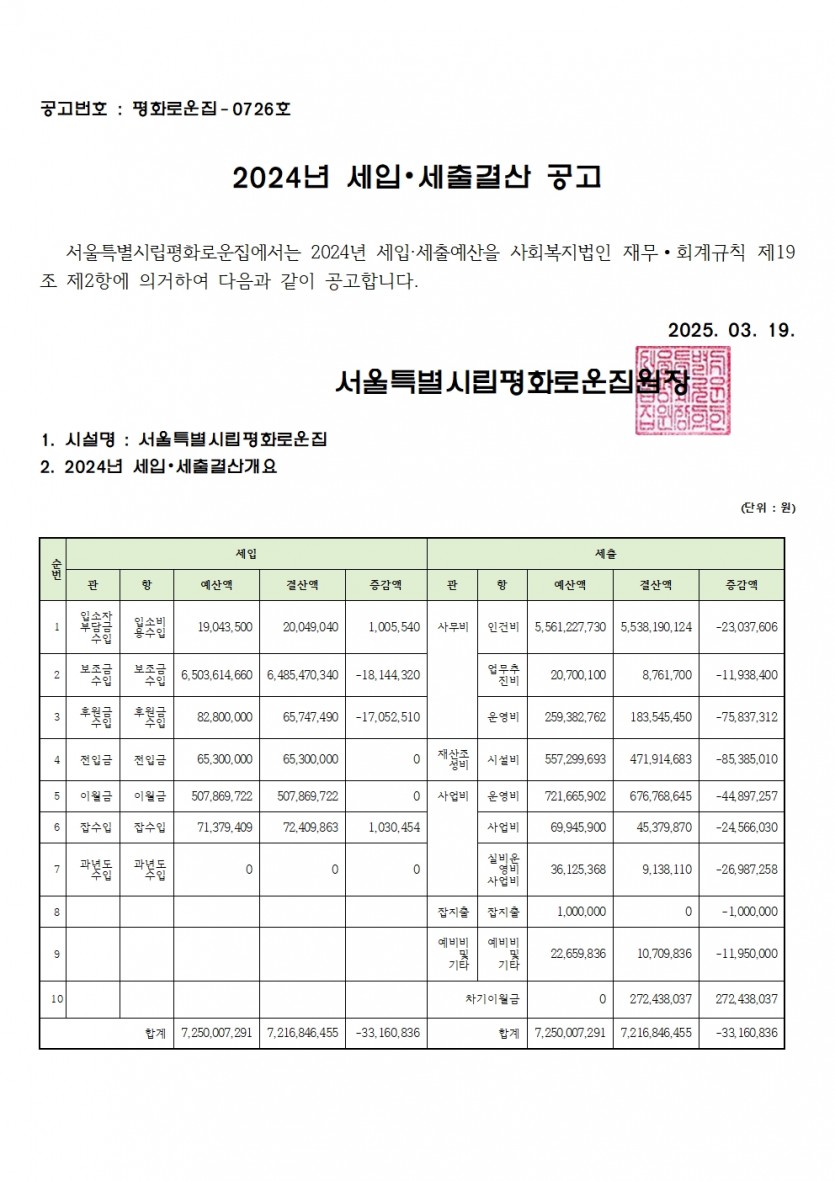 2024년 세입세출 결산서 공고 페이지 정보 작성자 한동주 작성일 25-03-19 13:28 조회 12,501회 댓글 0건 첨부파일 파일 홈페이지2024 세입.세출견결산공고.pdf (48.3K) 138회 다운로드 DATE : 2025-03-19 13:28:29 본문 2024년 세입세출결산서를 다음과 같이 공고합니다. 이전글 다음글 목록 답변