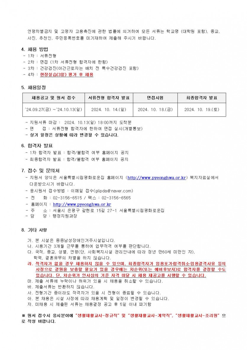 평화로운집 제10차 직원채용공고 페이지 정보 작성자 한동주 작성일 24-09-27 17:36 조회 17,509회 댓글 0건 첨부파일 파일 2024년-생활지도원 10월.hwp (36.5K) 108회 다운로드 DATE : 2024-09-27 17:36:34 파일 시립평화로운집 입사지원서이력서,자기소개서및개인정보동의서.hwp (22.5K) 80회 다운로드 DATE : 2024-09-27 17:36:34 본문 이전글 다음글 목록 답변