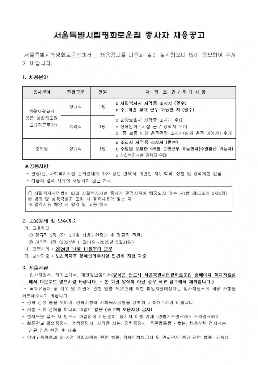 2024년 11차 직원채용 모집 공고 페이지 정보 작성자 한동주 작성일 24-10-14 17:49 조회 17,428회 댓글 0건 첨부파일 파일 2024년-생활지도원 조리원 11월.hwp (48.0K) 153회 다운로드 DATE : 2024-10-14 17:50:30 파일 시립평화로운집 입사지원서이력서,자기소개서및개인정보동의서.hwp (22.5K) 91회 다운로드 DATE : 2024-10-14 17:50:30 본문 이전글 다음글 목록 답변