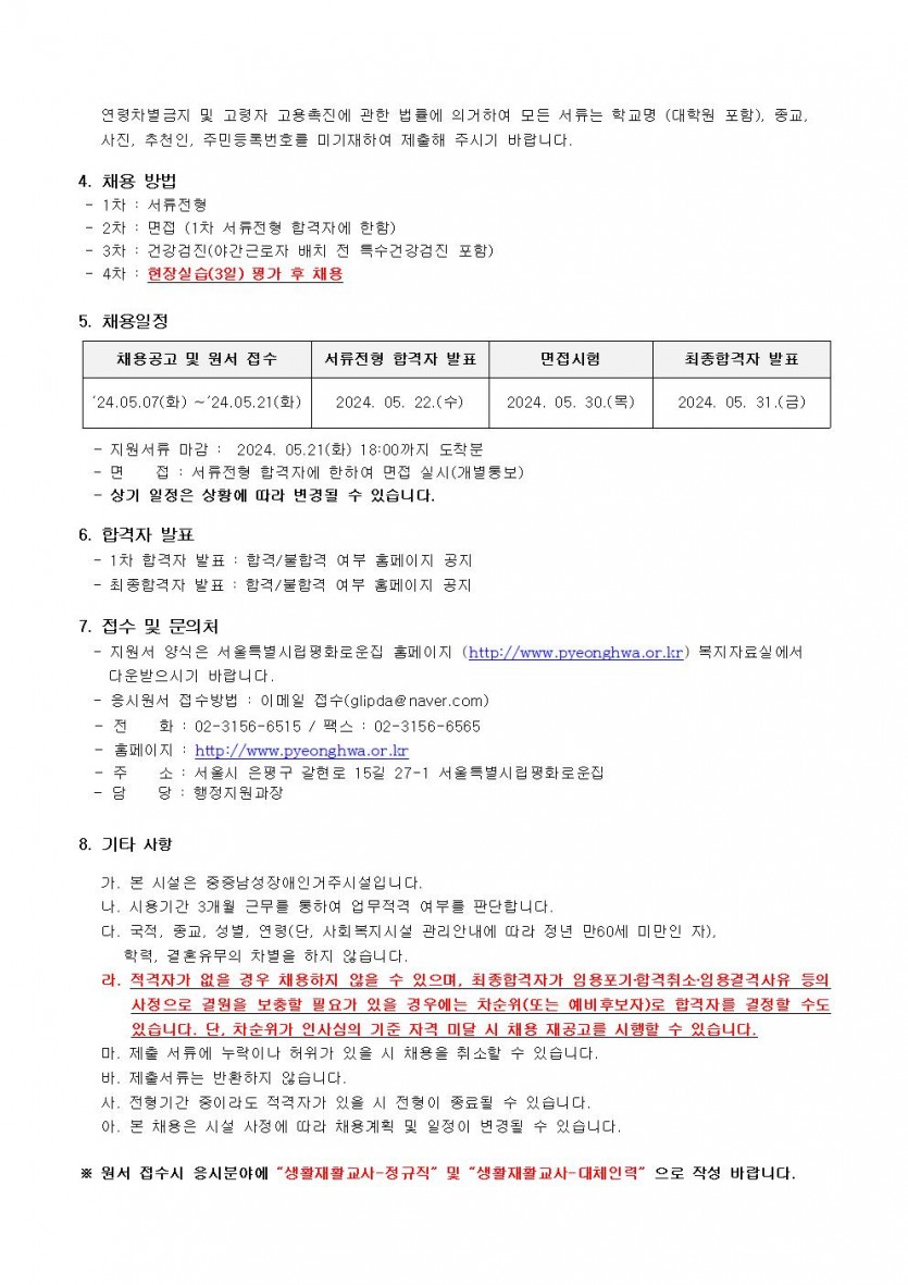 시립평화로운집 5차 직원채용 페이지 정보 작성자 한동주 작성일 24-05-07 17:45 조회 18,929회 댓글 0건 첨부파일 파일 시립평화로운집 입사지원서이력서,자기소개서및개인정보동의서.hwp (22.5K) 97회 다운로드 DATE : 2024-05-07 17:45:14 파일 2024년-생활지도원-5월.hwp (36.5K) 149회 다운로드 DATE : 2024-05-07 17:45:14 본문 이전글 다음글 목록 답변