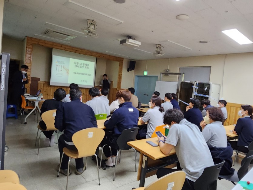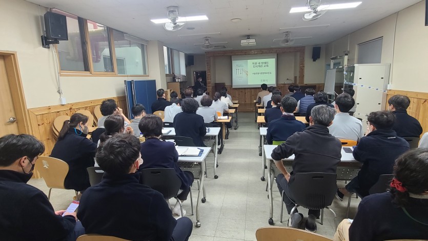 공지 | 장애인 인식 개선 교육 페이지 정보 작성자 장설궁 작성일 23-03-17 15:47 조회 7,778회 댓글 0건 본문 장애감수성을 키우고 장애공감문화 조성과 장애유무를 떠나 "우리는 모두 사람이니까" 라는 관점을 통해 포용사회 실현에 기여하기 위한 장애인 인식개선교육을 3월 15일 실시하였습니다. 열강을 해주신 조효식, 장양숙 강사님과 경청해주신 선생님들 감사합니다. 이전글 다음글 목록