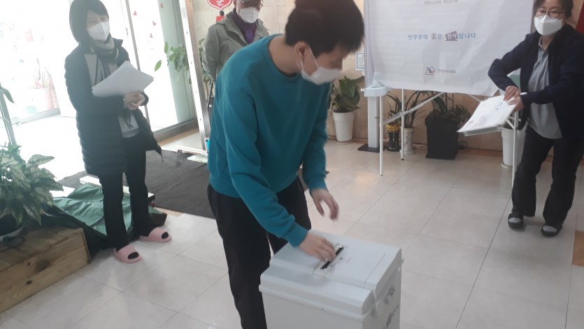 거주인 이야기 | 20대 대통령 거소투표 페이지 정보 작성자 한동주 작성일 22-03-03 14:06 조회 10,933회 댓글 0건 본문 3월2일 평화로운집 1층 로비에서 거소투표가 진행되었습니다.투표 참여 의사를 보인 39명의 거주인들을 대상으로 9시부터 진행되었습니다.은평구선거관리위원회 및 정당참관인 2명도 함께 참여하여 공정한 선거가 진행되는지 함께 확인하였습니다.다행히 큰 무리없이 무사하게 거소투표가 마무리되었습니다.거주인들의 소중한 한표가 행사되었습니다. 이전글 다음글 목록