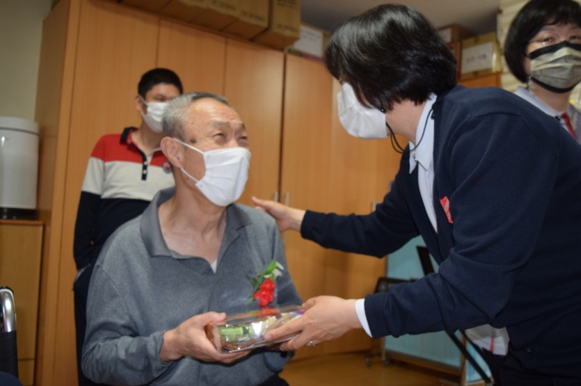 거주인 이야기 | 2021년 어버이날 기념 행사 페이지 정보 작성자 박성호 작성일 21-05-08 10:17 조회 12,109회 댓글 0건 본문 2021년 5월 8일. 어버이날을 맞아 서울특별시립평화로운집에 거주하고 계시는 가족분들을 위한 어버이날 행사를 진행했습니다!가슴에 달아드린 빨간색 카네이션처럼 항상 건강한 모습으로 곁에 오래오래 계시기를 기도합니다. 이전글 다음글 목록
