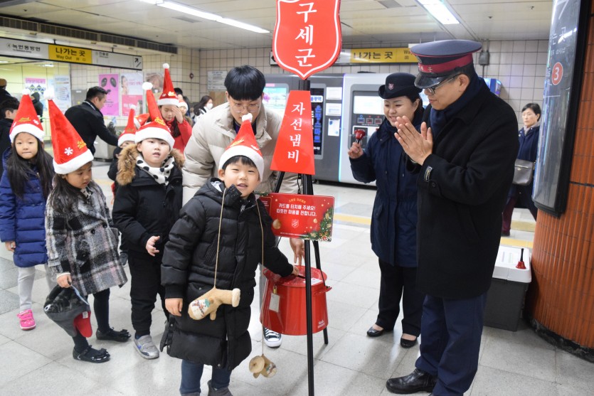 종소리를 울리며 모금을 독려하는 봉사활동을 펼쳐주었습니다