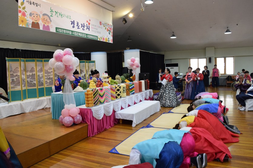어르신들을 모시고 장수에 대한 축복의 시간과 어른을 공경하는
