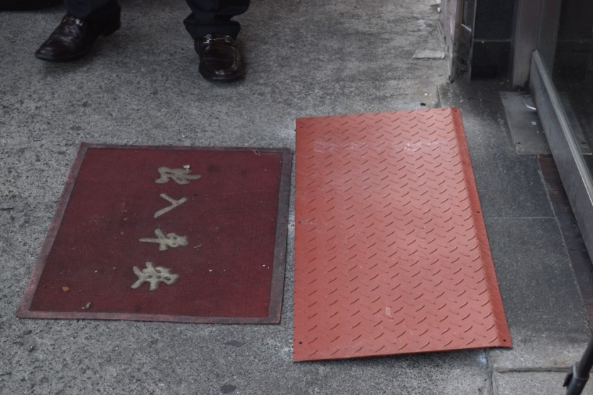 계단난간 손잡이와 점자 메뉴판, 점자 표지판 그리고 입구 경사로가 설치되었습니다.