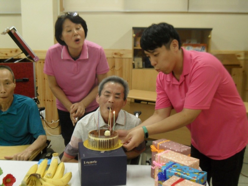 촛불이 꺼지자 축하객 모두 큰 박수로 환호하자 수줍게 웃음을 웃으셨습니다.