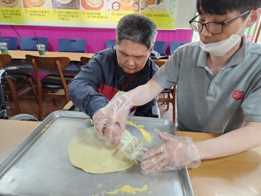 피자를 직접 만들어보고 갓 구운 피자도 맛있게 먹었습니다.