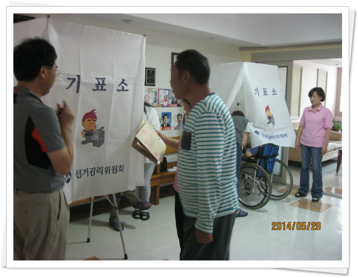 제6회 전국동시지방선거 거소투표실시 페이지 정보 작성자 이선희 작성일 14-06-02 15:59 조회 9,487회 댓글 0건 첨부파일 본문 본원 생활가족의 참정권 보장사업으로 2014년 6월4일 실시하는 제 6회 전국동시지방선거를 위한 거소투표를 진행되었고, 선거관리위원회에서 3명이 나오셔서 거소투표소에서 원활하게 투표가 진행되도록 도와주셨습니다. 자가 이동이 가능한 소수 인원은 6월4일 지역사회투표소에서 직접 투표할 예정입니다. 이전글 다음글 목록