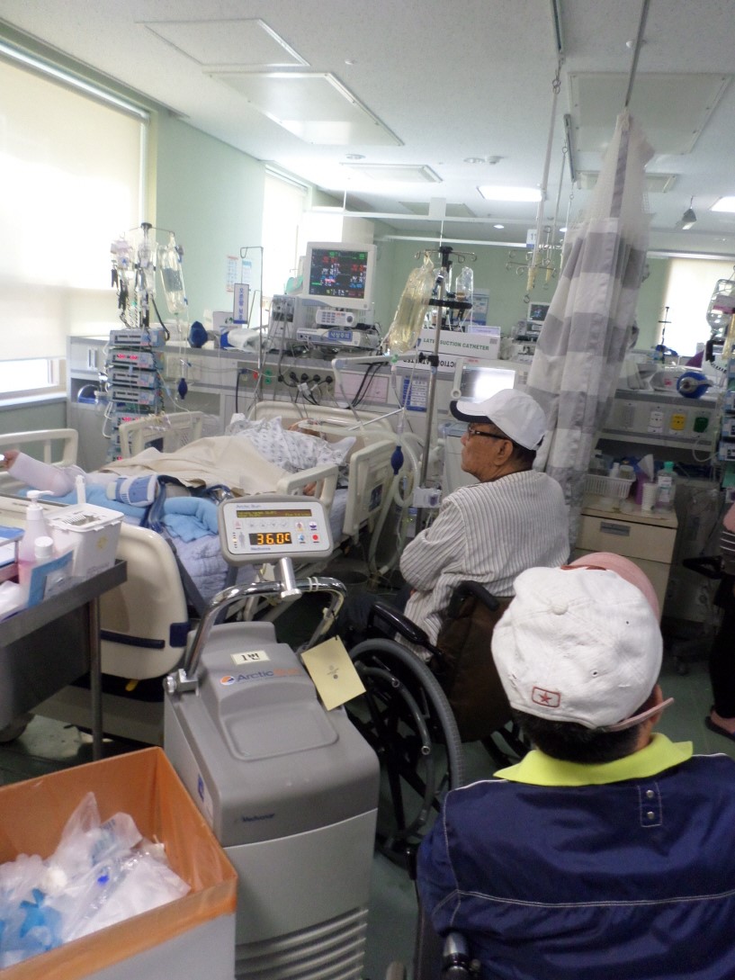 5월 5일 가정의 달의 맞이하여 2생활관에서 생활하시다 건강악화로 인해 보라매병원에 입원해 계신 손0식님의 병문안을 다녀왔습니다. 새벽에 갑작스러운 호흡곤란으로 인해 내과계중환자실로 이동하여 치료받고 계신 손0식님을 보며 병문안을 갔던 신0철님, 방0규님 및 인솔교사 모두 걱정스러운 모습과 숙연한 마음으로 돌아와야 했습니다. 손0식님의 빠른 쾌유를 빕니다.