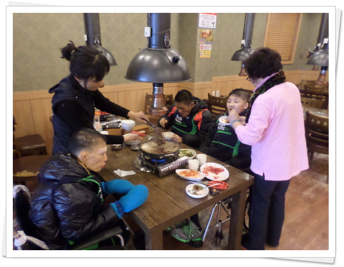 2생활관 기분좋은방 나들이활동 페이지 정보 작성자 이선희 작성일 14-02-18 16:14 조회 9,143회 댓글 0건 첨부파일 본문 2생활관 귀요미 가족들이 좋아하는 불고기 외식을 겸한 나들이 활동을 하고 왔습니다. 평소 행동장애로 인해 외출이 어려웠던 김인*님, 노상*님, 이용*님을 모시고 서오능 임가내에서 맛있는 불고기 만찬을 하고 평화의공원을 산책하고 돌아왔습니다. 이전글 다음글 목록
