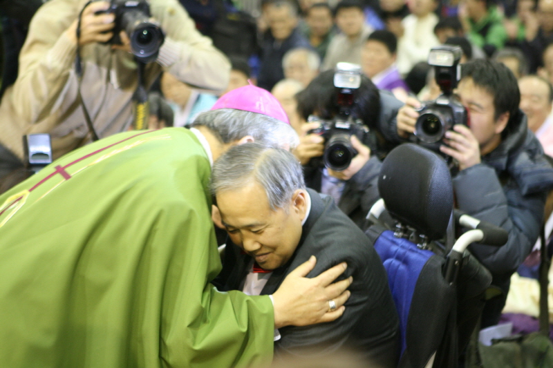 이날 미사 성찬의 전례 중 가족분들에게 다가가 직접 성체를 분배하신 염 추기경님께서는 “지난해 12월 23일 성탄 미사를 이곳에서 집전하기로 약속했는데 이전에 지키지 못한 약속을 지키기 위해 여기에 왔다”며 “하느님께서는 우리가 어떤 사람이든지, 있는 그대로의 모습을 사랑하며, 이것이 바로 복음의 기쁜 소식이다”라고 말씀해주셨습니다.