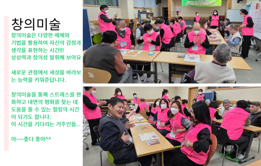 후원자·봉사자 이야기 | KCU참사랑나누미 창의미술활동 페이지 정보 작성자 장설궁 작성일 26-01-07 13:35 조회 1,308회 댓글 0건 본문 함께교육해주신 참사랑나누미 KCU 에게감사의 마음을 전합니다.감사합니다. 다음달에 뵈어요~~ 이전글 다음글 검색 목록