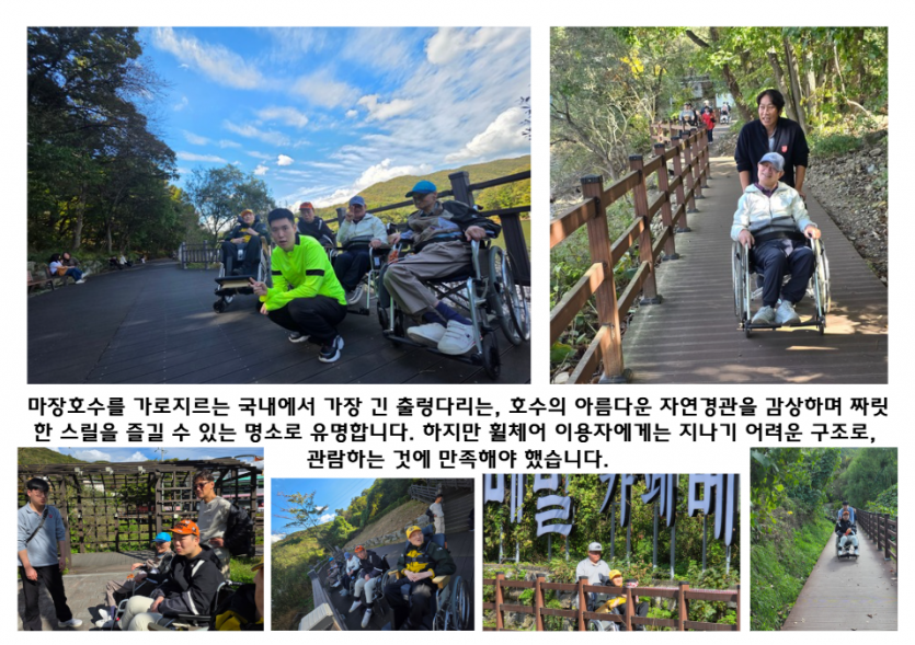거주인 이야기 | 2025년 12차 문화누리나들이 종료 페이지 정보 작성자 장설궁 작성일 25-10-29 14:21 조회 2,089회 댓글 0건 본문 2025년 10월 25일, 시립평화로운집(중증장애인 거주시설)은 연중 문화 체험 프로그램 '문화누리나들이'의 12차 활동을 행복하게 마무리했습니다마지막회차 에서는 마장 호수 산책과 오랑주리 카페 체험으로사회적 참여와 정서적 안정을 도모 하였습니다. 함께 해주신선생님들에게 감사의 마음을 전합니다.감사합니다. 이전글 다음글 목록