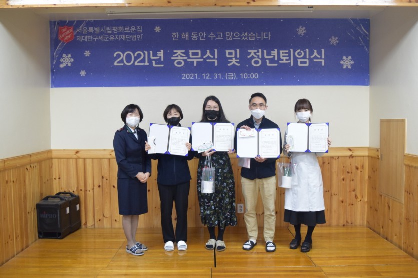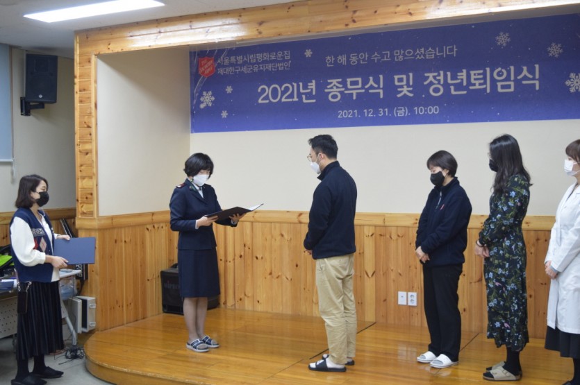 2021년 한해동안 고생한 평화로운집 종사자들의 노고에 진심으로 감사드리며, 종무식 행사에는 우수종사자 표창이 진행되었습니다.