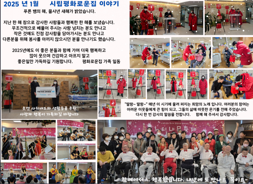 2025년 새해가 밝았습니다. 1월 후원 감사편지 페이지 정보 작성자 장설궁 작성일 25-01-02 11:36 조회 5,423회 댓글 0건 본문 아쉬워한다고 해서 돌아올 수 있는 시간이라면 100번이고 1000번이고 뒤를 돌아보겠지만.2024년의 아쉬움, 슬픔, 고통 모두 보내시고보낸 그 자리에 설렘과 기쁨, 행복만 흘러 들어오길2025년엔 많이 웃고 행복했으면 좋겠습니다. 이전글 다음글 목록