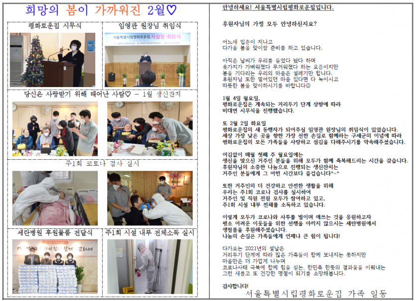 2021년 2월 후원자 감사편지 페이지 정보 작성자 박상은 작성일 21-02-06 17:02 조회 13,825회 댓글 0건 본문 2021년 2월, 어느새 봄이 다가오고 있습니다.늘 나눔으로 함께해주시는 후원자님께감사의 편지를 올립니다. 이전글 다음글 목록