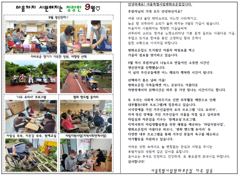 2021년 9월 후원자 감사편지 페이지 정보 작성자 박상은 작성일 21-11-18 10:03 조회 12,600회 댓글 0건 본문 가을의 시작!9월, 후원자님께 감사의 편지를 올립니다. 이전글 다음글 목록