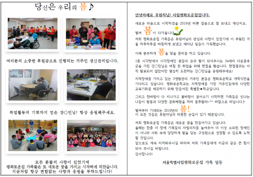 2019년 3월 후원자 감사편지 페이지 정보 작성자 박상은 작성일 20-09-11 11:30 조회 14,030회 댓글 0건 본문 늘 나눔으로 함께해주시는 후원자님께감사의 편지를 올립니다. 이전글 다음글 목록