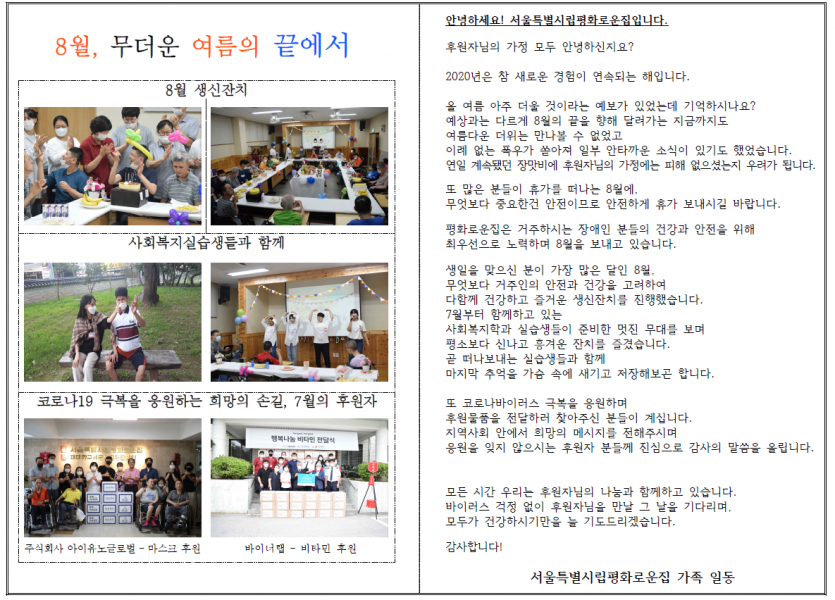 2020년 8월 후원자 감사편지 페이지 정보 작성자 박상은 작성일 20-09-11 15:55 조회 14,035회 댓글 0건 본문 늘 나눔으로 함께해주시는 후원자님께감사의 편지를 올립니다. 이전글 다음글 목록