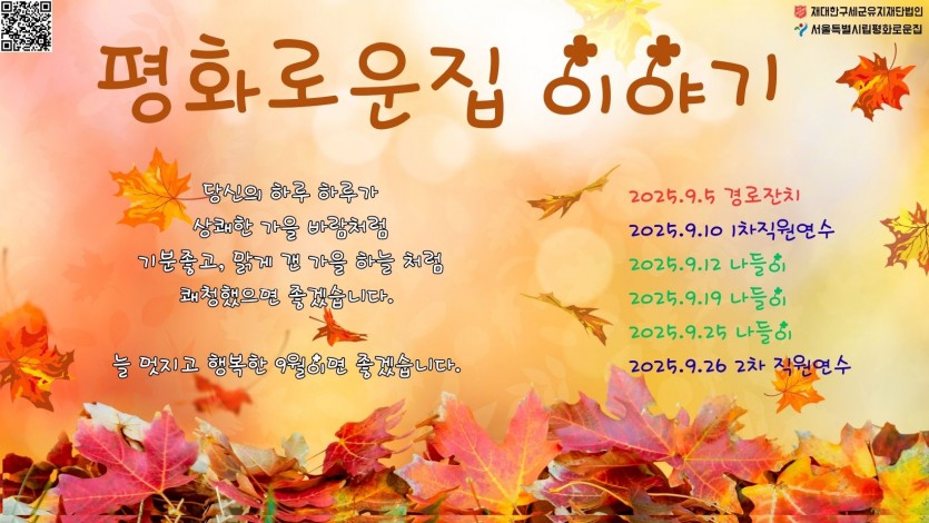 2025년 시립평화로운집 9월 후원감사편지 페이지 정보 작성자 장설궁 작성일 25-08-28 16:38 조회 2,405회 댓글 0건 본문 신선한 바람이 마음까지 맑게 해주는 9월입니다. 풍요로운계절행복과 여유가 가득한 한 달 되시길 바랍니다.9월 바람결에 행복을 보냅니다~~~ 이전글 다음글 목록