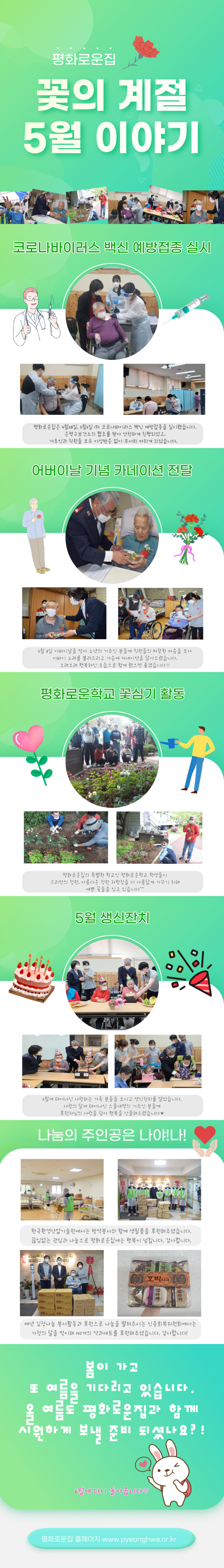 서울특별시립평화로운집 5월 카드 뉴스! 페이지 정보 작성자 박성호 작성일 21-05-25 11:25 조회 17,218회 댓글 0건 본문 가정의달 5월!2021년 서울특별시립평화로운집의 5월엔 어떤일이 있었을까요?간편하게 볼 수 있도록 카드뉴스를 제작 했습니다! 카드뉴스를 통해 시립평화로운집의 5월을 확인해 보세요~! 이전글 다음글 목록